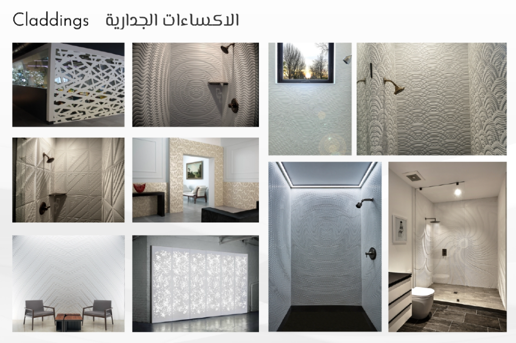 Wall Claddings: 6mm to 12mm thick installation on the walls/columns and Texture (Ex: Malls, Library, Auditorium’s Etc.)